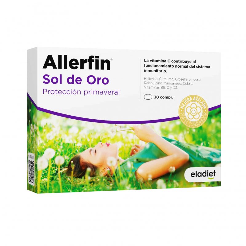 Complemento alimenticio a base de sol de oro, grosellero negro, reishi, cúrcuma, vitaminas y minerales. Para ayudar a una normal respuesta del organismo, en condiciones especiales del medio ambiente como polvo, polen y ácaros.