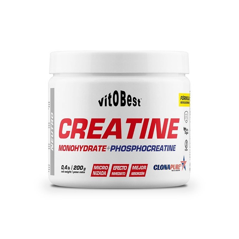 Clonapure®, de Vitobest®, contiene en su fórmula la forma activa real de creatina, que es fosfocreatina, por lo tanto, la respuesta en el tiempo de Clonapure® es más efectiva que la suplementación con monohidrato de creatina.